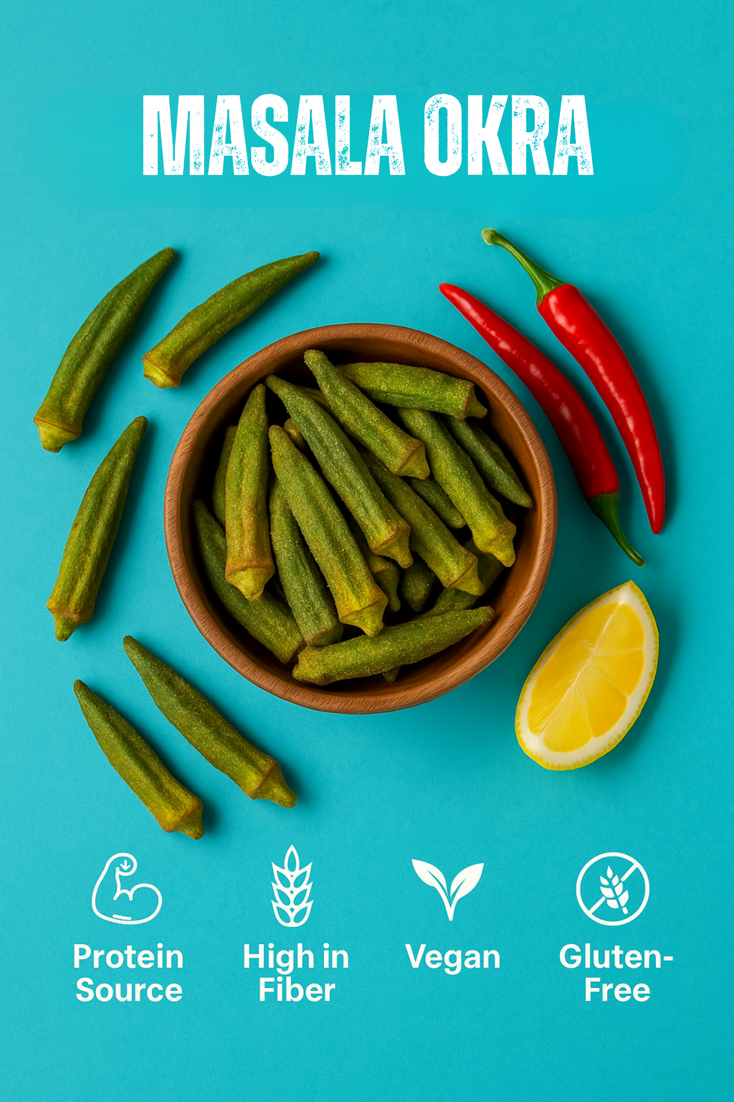 Czy zdarzyło Ci się kiedyś sięgnąć po przekąskę i od razu zastanowić „Gdzie zniknęła reszta tej paczki?” Tak. To właśnie o to chodzi w naszych chipsach z Okry Masala. Są one produkowane z całych strąków okry - przyprawiane naszą autorską mieszanką, nadającemu im smaku indyjskiej masali z subtelnym i jednocześnie pikantnym akcentem, który stopniowo narasta, sprawiając, że sięgasz po więcej. Te chipsy są bogate w białko i błonnik, są wegańskie i bezglutenowe. Idealne na przerwy w pracy lub zawsze, gdy czujesz potrzebę sięgnięcia po przekąskę.